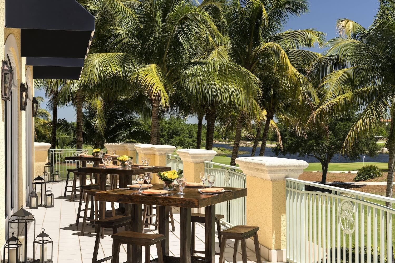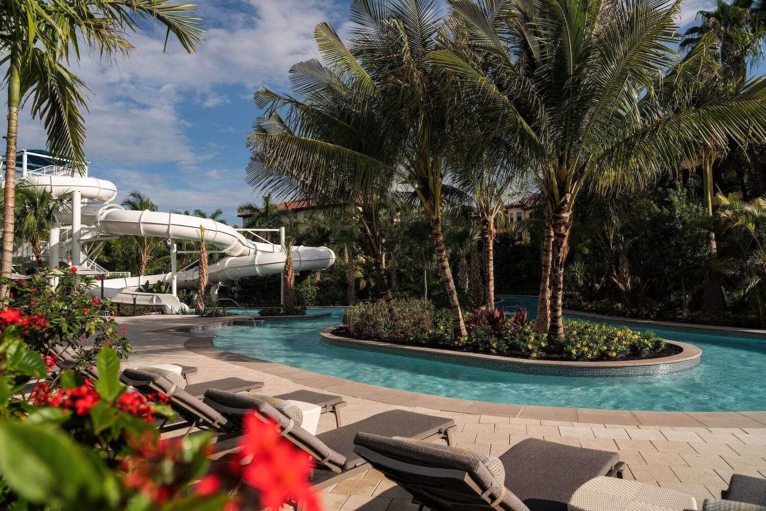 The on-site waterpark features a 630-foot lazy river, three waterslides launching from 30 feet, a children's splash-and-play area, and private cabanas. This is the primary family draw and one of the most complete resort waterpark offerings in the Naples market.
